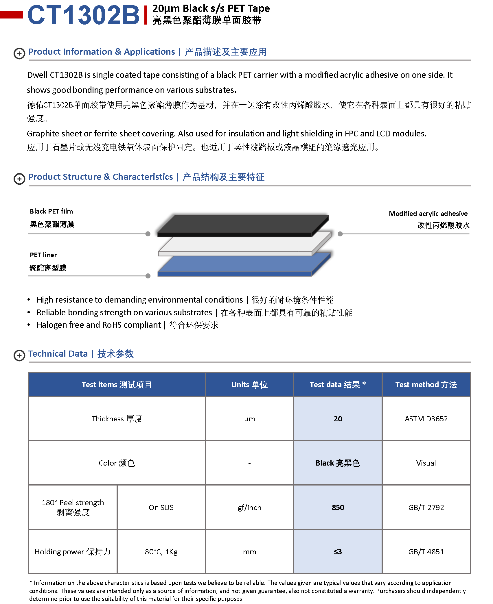 SOLUTION > Single-sided film tape > Dwell CT1302B